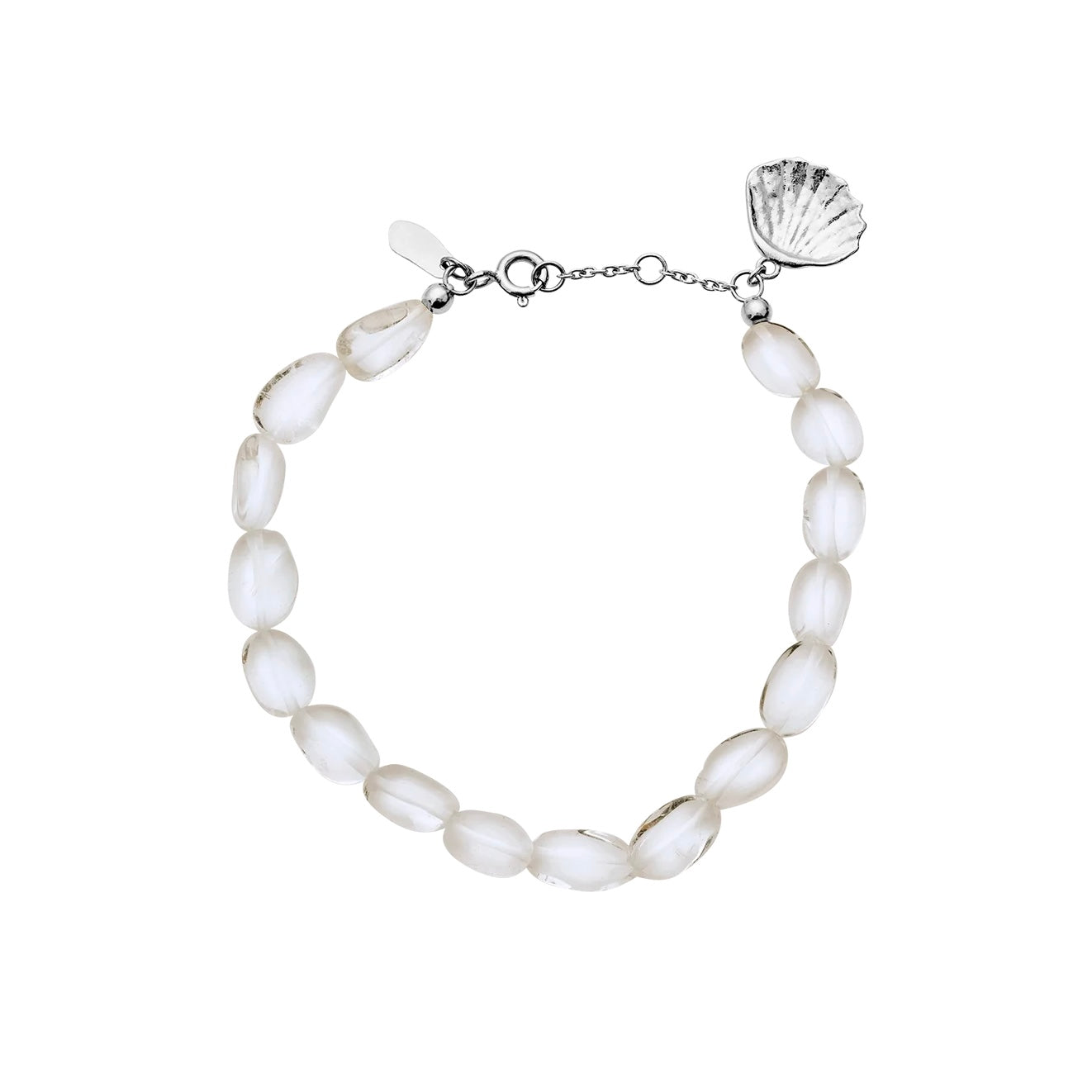 Født av havet, født av kjærlighet. Legenden om Afrodite lever videre i vårt Simou-armbånd, der den harmoniske rekken av krystaller symboliserer vannets rensende kraft, og skjellet er en talisman for innovasjon og kreativitet. Materialer: Resirkulert sterlingsølv (925), bergkrystall Størrelse: Lengde Lengde 16 cm + 2 cm