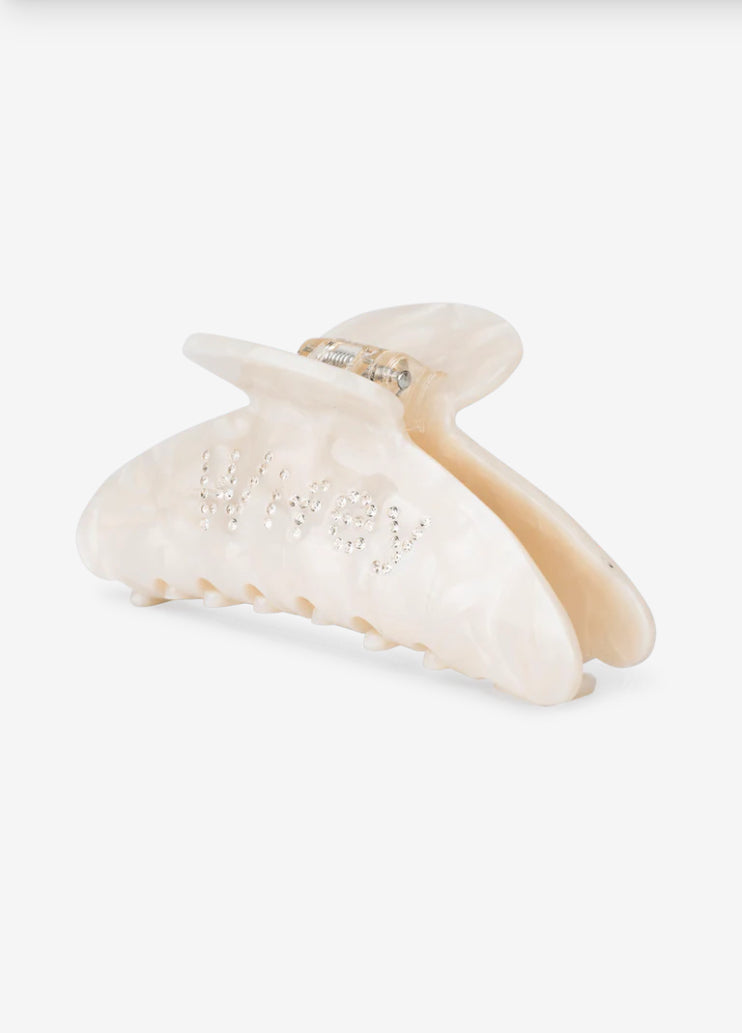 Er du klar til at omfavne din nye titel med stil? Ida Bright White Big er den ultimative hårklemme til dig, der netop har sagt "ja". Med det elegante perlemorsskær og “Wifey” skrevet i glitrende sten, er den både romantisk, sjov og stilfuld - perfekt til honeymoon, brunch med veninderne eller bare en almindelig hverdag, hvor du gerne vil minde dig selv om, hvor magisk kærlighed er