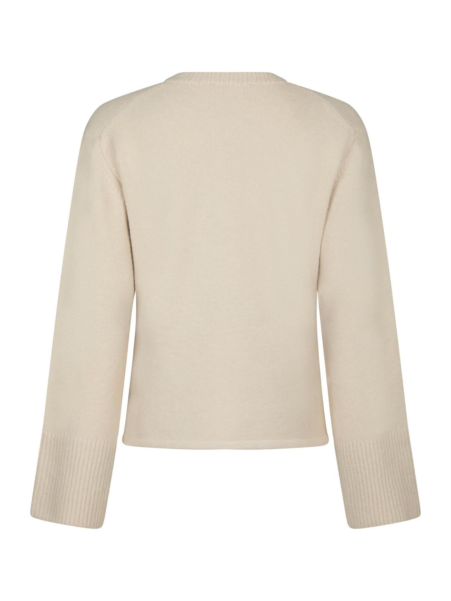 Elegant strikkejakke med lange ermer og brede mansjetter. Jakken har perleknapper foran.