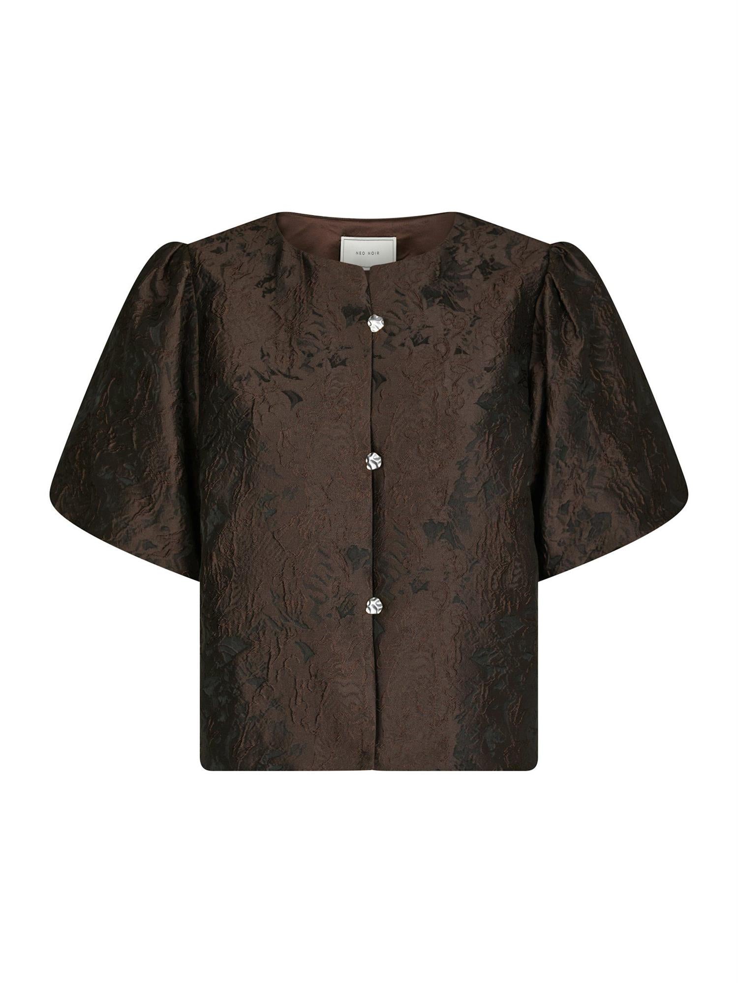 Bluse med pufferm og knapplukking foran. Den har en fin strukturert kvalitet. Kan også brukes som jakke.