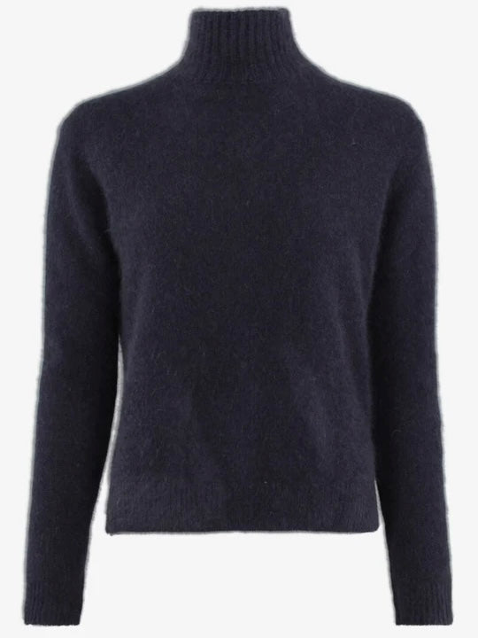 Jade fra Six Ames i 100% racoon-ull. Genseren har høy hals og en liten split på hver side.